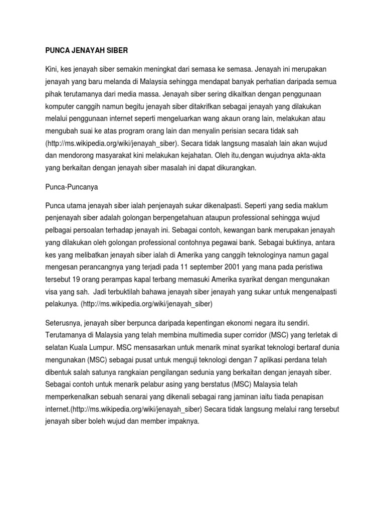 Berlaku jenayah siber Sumber Internet Pada era globalisasi kini kemajuan teknologi maklumat dan komunikasi ICT menjadi semakin penting untuk setiap manusia.